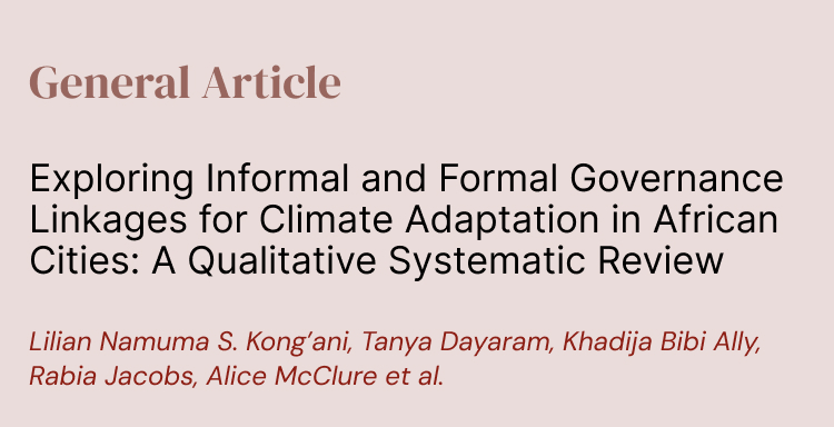 This special edition in Urbanisation seeks to explore the multifaceted relationship between informality and climate change in cities in the Global South. We welcome submissions focusing on the global South and the following themes, including case studies and evidence synthesis: